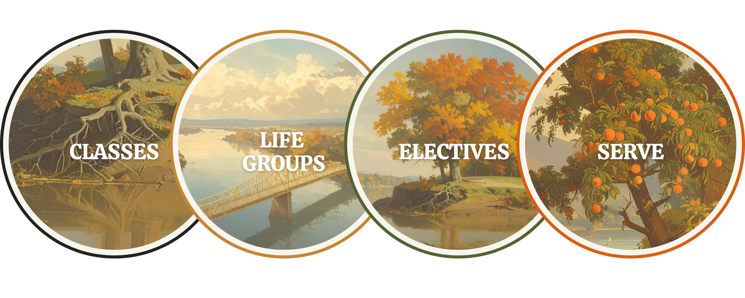 Our pathway reflects four ways to grow in your faith: Classes, Life Groups, Electives, and opportunities to Serve. In each of these, you will find God’s Word as foundational, community as essential, and serving others as the way we live together..